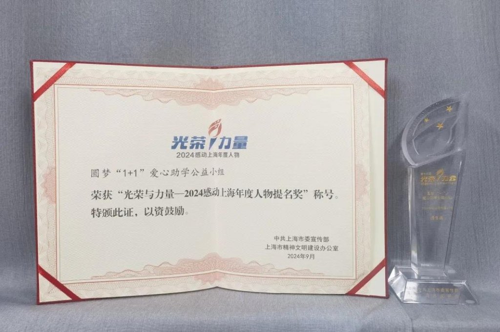 “2024感動上海年度人物推選活動”(第十三屆)獲獎名單正式揭曉。中通快遞集團“圓夢 1+1”愛心助學公益小組榮獲“光榮與力量——2024 感動上海年度人物”提名獎。