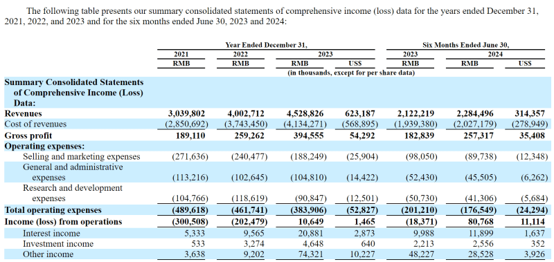 閃送在2024年上半年的營業收入為22.84億元(約合3.14億美元),上一年同期的營業收入為21.22億元;毛利潤為2.57億元(約合3541萬美元),上一年同期為1.82億元;毛利率為11.3%,相較于上一年同期的毛利率8.6%提升了2.7個百分點;凈利潤為1.24億元(約合1702萬美元),上一年同期凈利潤為4206萬元;凈利率為5.4%,較上一年同期的2%提升了3.4個百分點。