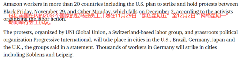 前不久,美國、德國、英國、日本和巴西等20多個國家的亞馬遜倉庫工人還計劃在黑五網一大促期間發起名為“Make Amazon Pay(讓亞馬遜支付)”的罷工活動,以爭取更高的工資和更好的工作環境。而旺季期間的罷工活動,無疑會極大地影響物流交付。