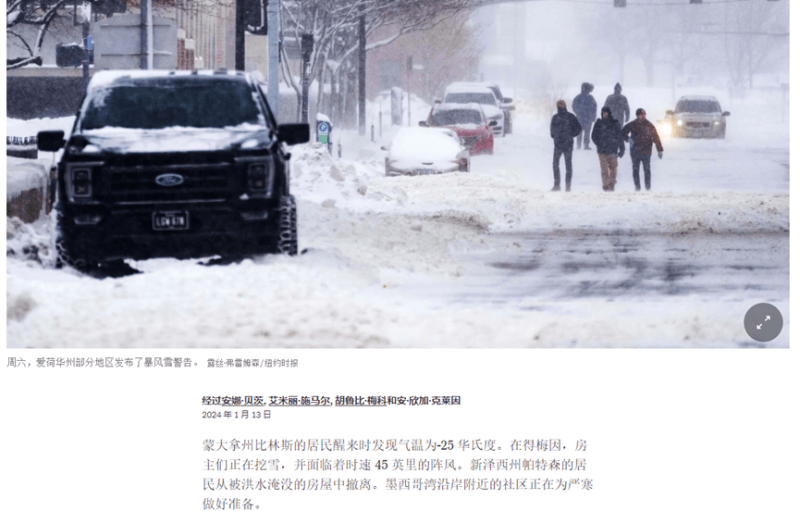 暴風雪等極端天氣侵襲美國 圖源:nytimes