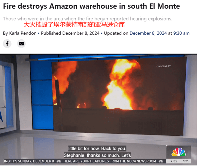 其實,這并非亞馬遜賣家近期遇到的唯一一個物流挑戰。就在前幾天,還有一個噩耗傳來:亞馬遜位于美國南埃爾蒙特圣塔安尼塔大道1400號街區的一座倉庫突發火災,倉內貨物幾乎全部被燒毀。不少賣家一覺醒來,發現自己的貨沒了,可謂欲哭無淚。不過好在,根據平臺的規定,賣家可以獲得貨物喪失、損毀的補償。