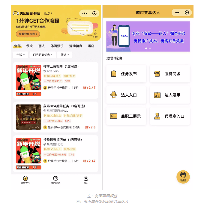 小滿開發的微信小程序名為“城市共享達人”,有任務發布、服務商城、達人入口、達人展示等6個功能板塊。